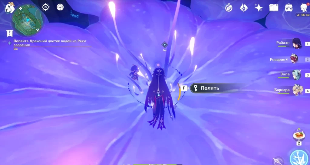 Далее добудьте воду из Реки забвения, просто подойдя к квестовому маркеру. Теперь переместитесь в Утробу змея, чтобы взобраться на верхушку Драконьего цветка. Полейте его ранее набранной водой.