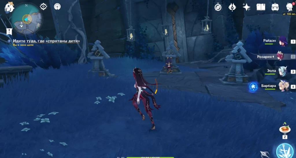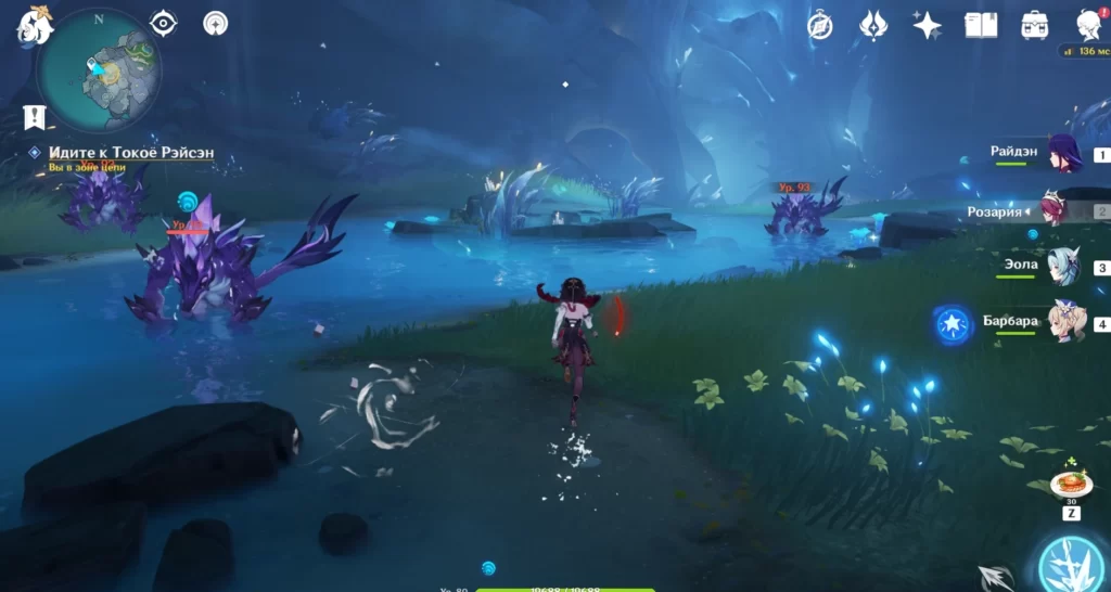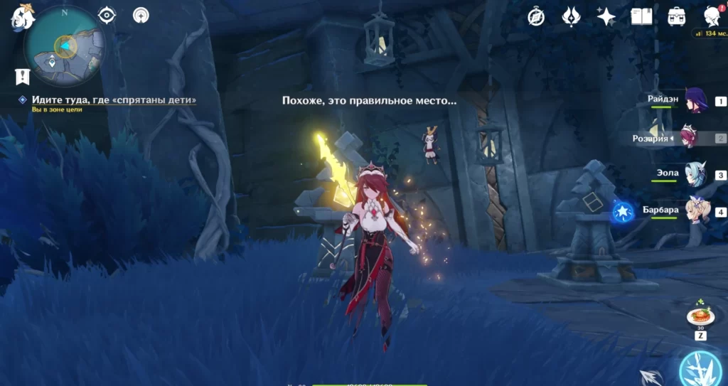 Переместитесь в Храм вечной ночи и двигайтесь к отмеченной на карте области. Там вас будут ждать 3 Электро вишапы глубин. Советуем взять в отряд мощного Крио дамагера, чтобы быстро разобраться с ними.