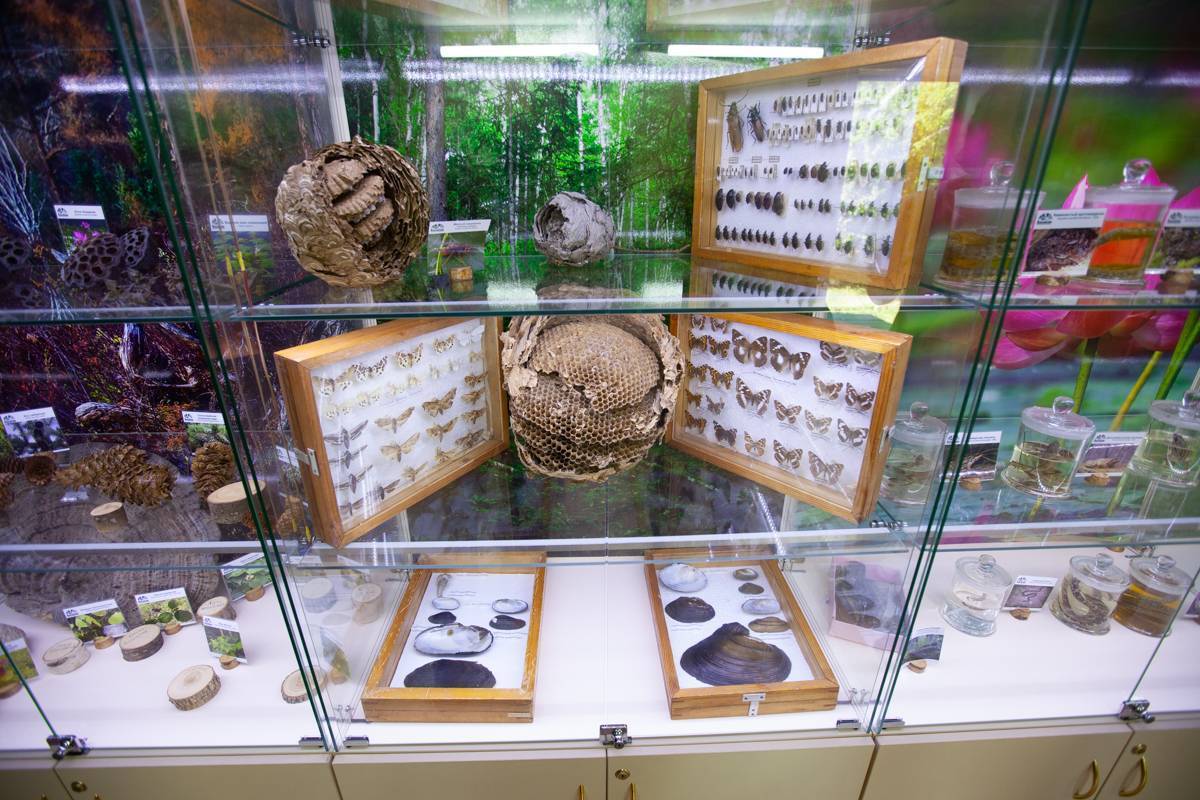 В визит-центре есть птичьи гнезда и яйца (точнее — пробитая в одном месте и высушенная скорлупа) даурского журавля, а также экспозиция с кладкой мандаринок. Неменьший интерес вызывают у посетителей и гнезда насекомых. Небольшое, размером с крупный грейпфрут принадлежит осам, еще два — шершням.