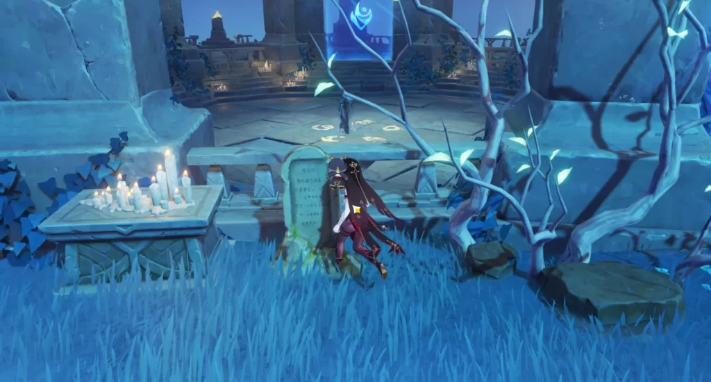 Поверните первые ворота и пройдите через них, после чего полетите вниз, пока не увидите четвертые ворота. Рядом с ними вас будут ждать руинные стражники, охраняющие сундук. Разберитесь с мобами и осмотрите ларец, призвав фею – следуя за ней, доберитесь до первых врат и взаимодействуйте с громовой сакурой.