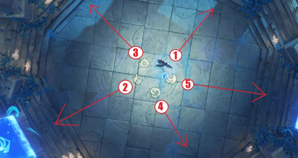 Далее вы увидите пять кубов, по которым вам нужно ударить определенное количество раз, чтобы барьер исчез. Порядок следующий: