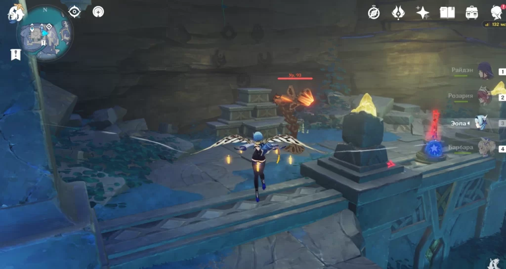 Если вернуться немного назад к месту, где вы открывали проход не так давно, вы найдете новую локацию с парой противников и одним сундуком. Ликвидировав угрозу, взаимодействуйте с релейными камнями, чтобы добраться до висящего в небе Электрокула.