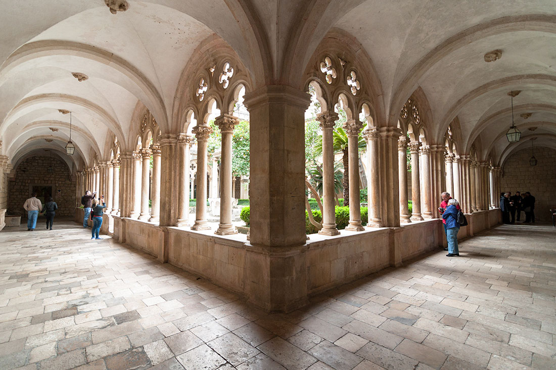 В этом католическом монастыре, находящемся вблизи городских ворот Пиле в западном конце улицы Страдун, размещается уникальная аптека – одна из трех старейших функционирующих аптек во всем мире. Большая часть первоначально построенного монастыря была разрушена во время сильного землетрясения 1667 года, уцелел лишь романский клуатр и монастырские сады – они выглядят почти так же, как и 500 лет назад.