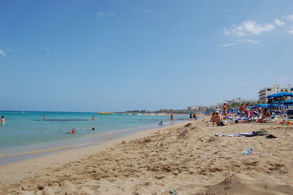 Пляж-мечта в Протарасе – в 2011 году, по версии Tripadvisor, пляж вошёл в ТОП-3 лучших пляжей Европы и до сих пор по праву носит гордое звание лучшего пляжа Кипра. Чудесный, практически белый, песчаный пляж с чистейшей водой протянулся вдоль берега на 500 метров. Он прекрасно оборудован: душевые и туалеты, кафе и рестораны, лежаки и зонты напрокат, большая парковка. Если соберётесь сюда заехать, – имейте в виду, что пляж пользуется большой популярностью, и уже к полудню все лежаки и зонтики будут заняты. Так что советую приезжать пораньше.