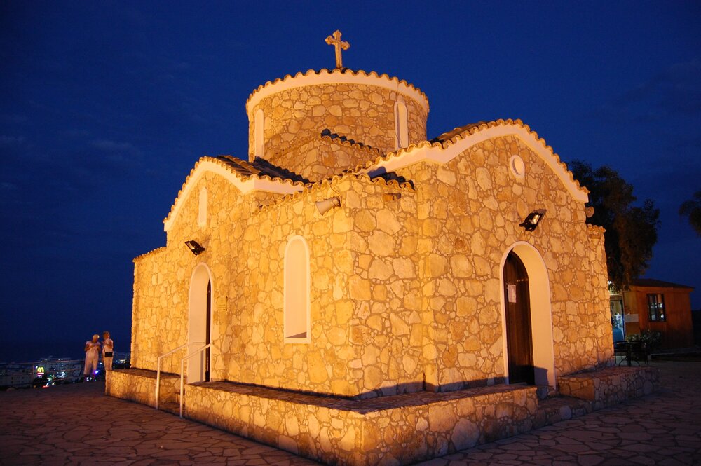 Церковь Святого Илии Пророка (Church of Profitis Elias) — старый православный храм XIV в. Сюда лучше приходить вечером — не так жарко, ведь придется подняться на небольшую гору. А еще отсюда открывается великолепный вид на Протарас и окрестности — в свете огней все это выглядит особенно красиво.
