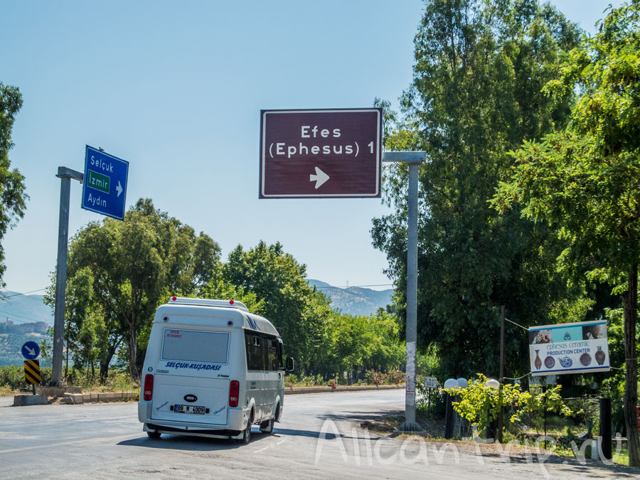 Мы добирались самостоятельно, на долмуше из Кушадас. Отправляется маршрутка от главной площади, на маршрутке написано Selçuk. До поворота на Эфес стоит 9 лир (цены 2020 года). Так водителю сразу и говорите — Эфес.