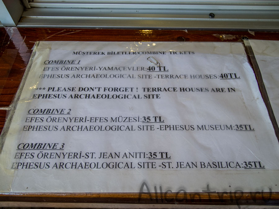 Вход на территорию Эфеса — 100 лир (цены 2020 г.).