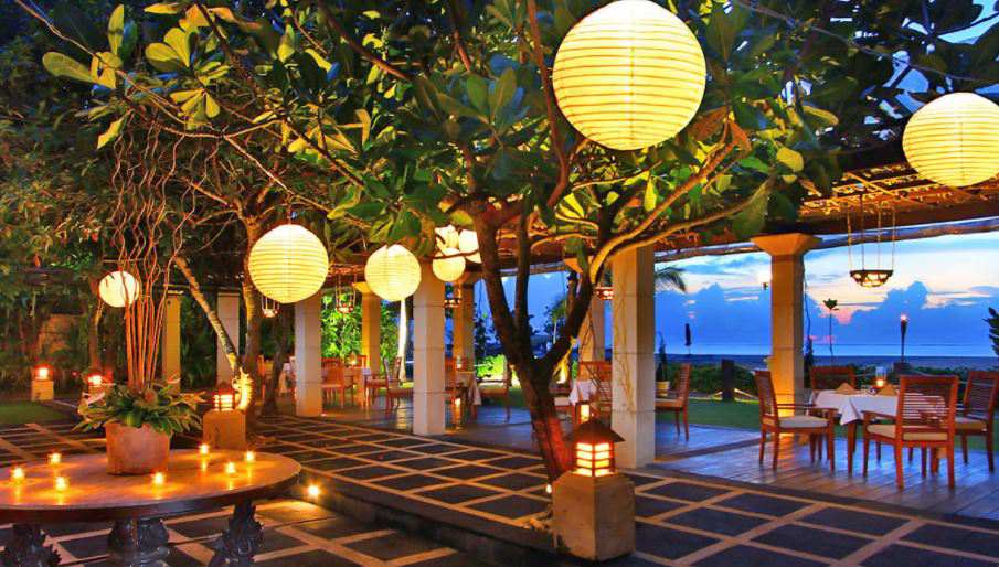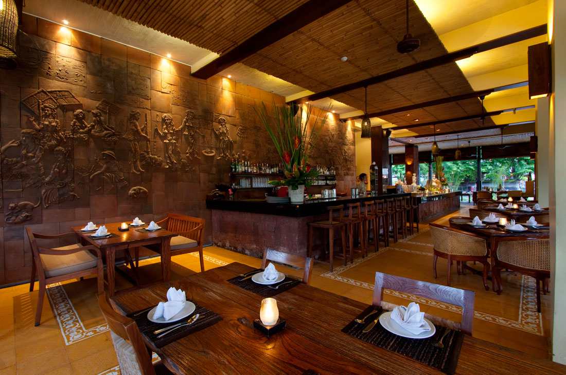 В ресторане ежедневно подают интернациональный завтрак «шведский стол», а на обед и ужин в течение всего дня подают блюда балийской, индонезийской, азиатской и западной кухонь. Также проводятся ежедневные развлекательные программы во время ужина.