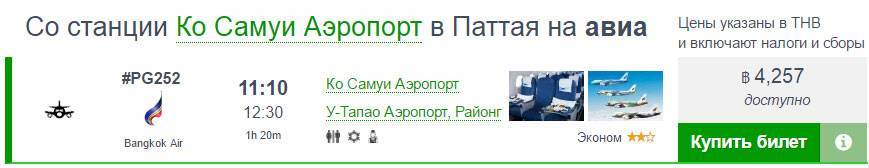 Стоимость авиабилета Паттайя – Самуи авиакомпании Бангкок Эйрвейс – 4970 батов со сборами(150$)