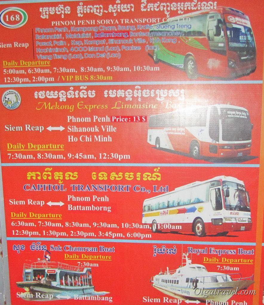 Мы ехали из в Сиануквиль на слиппинг басе, он делал остановку и в Пномпене. Если бы я ехала из Сием Рипа в Пномпень, я бы выбрала дневной минибас.