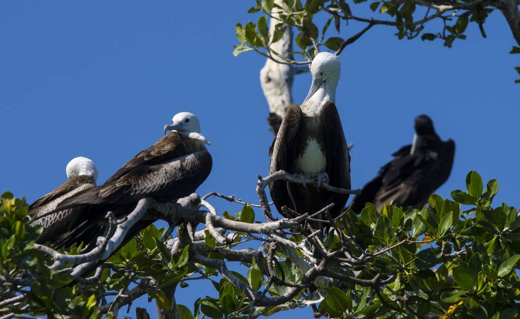 Мангровые деревья, а в заповеднике произрастают черное, красное и белое мангровое дерево, являются вечнозелеными деревьями, имеющими способность расти в полосе прилива-отлива. Вот они и поселились вдоль берега, в устьях речушек и на берегах лагун. А их удивительные корни сплетаются в такой клубок, что пробраться через них нет никакой возможности.