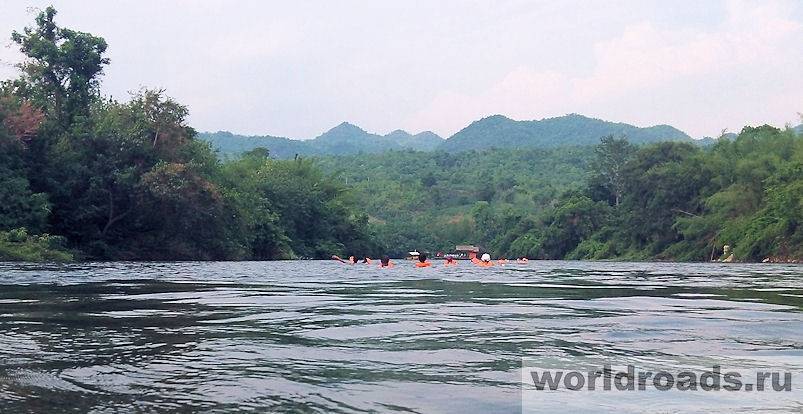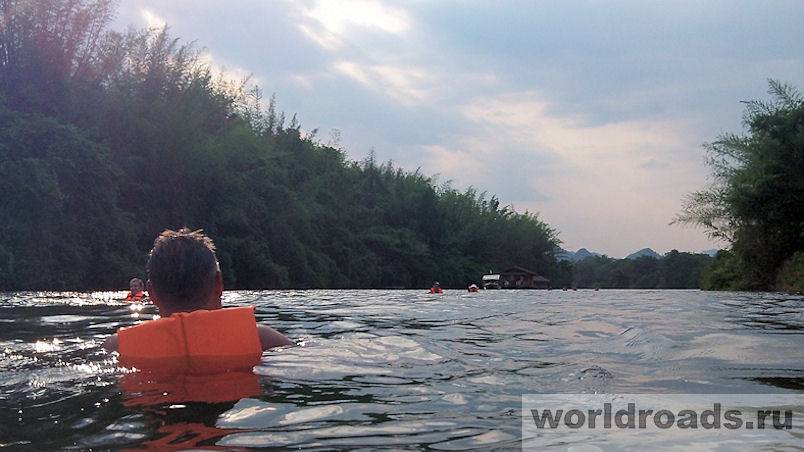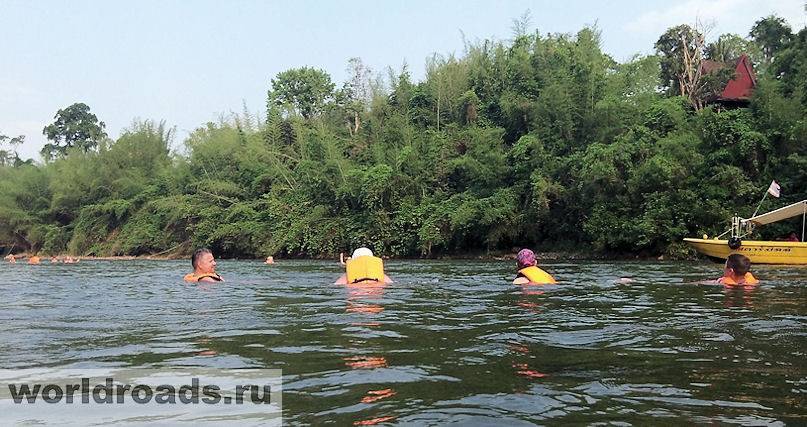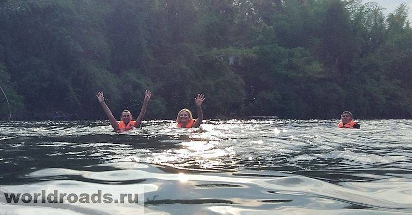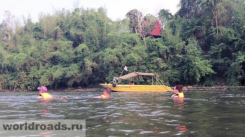 На самом деле в реке Квай нет крокодилов и кусачих рыб. Река тёплая и приятная. А у ребят есть маленькие глиссеры и багор: промахнется пловец – догонят, отловят и вернут на место, где взяли. Всё предусмотрено.