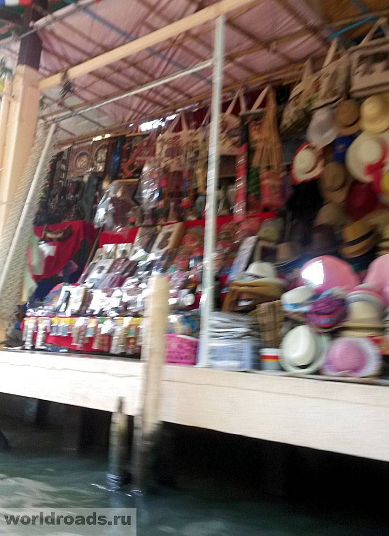 Плавучие домики оборудованы открытой витриной, на которой разложено большое количество различных сувениров, зачастую сделанных своими руками. Здесь можно увидеть деревянные дудочки из бамбука, расписные парео и палантины, каменные бусы, фигурки Будды и другие интересные вещи. Фрукты продаются на специальных лотках.