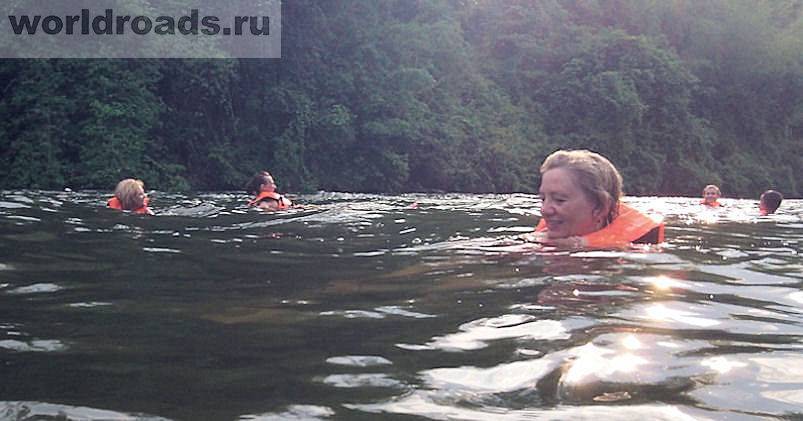 Хотя чего-то особенного в этом сплаве нет, подавляющее большинство туристов почему-то от него в восторге. К месту старта их доставляют или на больших десятиместных лодках, или на бамбуковых плотах. Перед сплавом гиды обычно дают своим подопечным напутствие. Сообщают, что крокодилов здесь сейчас быть не должно. Может лишь вынырнуть варан, которого бояться не надо, так как он испугается еще сильнее. Надо уточнить, что такое предупреждения – просто очередной традиционный «прикол» гидов. Нравится им, когда боязливые туристки, увидев на реке что-нибудь подозрительное, начинают громко визжать.
