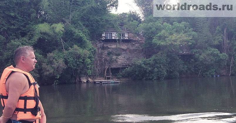 Нам рассказали, как сплавляться. Прыгаете в воду, радуетесь жизни, а через пару километров забираетесь обратно на плот. Вот тут мне стало интересно! Ниже по течению, в километрах 20 – водохранилище, образованное из-за дамбы электростанции, мы проезжали её и она очень высокая. Меня интересовал вопрос, а что если я не смогу аккуратно подплыть к барже и пронесусь мимо? Течение реки Квай достаточно быстрое. Или у меня сил не хватит поднять себя на баржу… На что мне сказали, что тут есть местные крокодилы – их же надо чем-то кормить. Ну, а если всё-таки крокодилы останутся голодными, то перед дамбой есть сетка – там и отлавливают пловцов-неудачников.