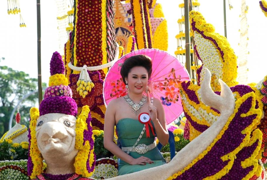 2. Фестиваль цветов — еще красочное действо, по своему проведению не уступающее Новогоднему мероприятию. Если вы приедете в Тайланд впервые, то сразу заметите привычку тайцев украшать все цветами, они любят плести цветочные венки, собирать букеты и превращать свои сады в оранжереи. Цветы можно увидеть на лодках, в вазах повсюду на улицах, у храмов так же полно свежесрезанных цветов. Но ни одень не может сравнится с изобилием в эти дни в Тайланде, а именно в первую февральскую пятницу, когда по улицам идут процессии тайцев в костюмах, украшенные цветочными композициями.