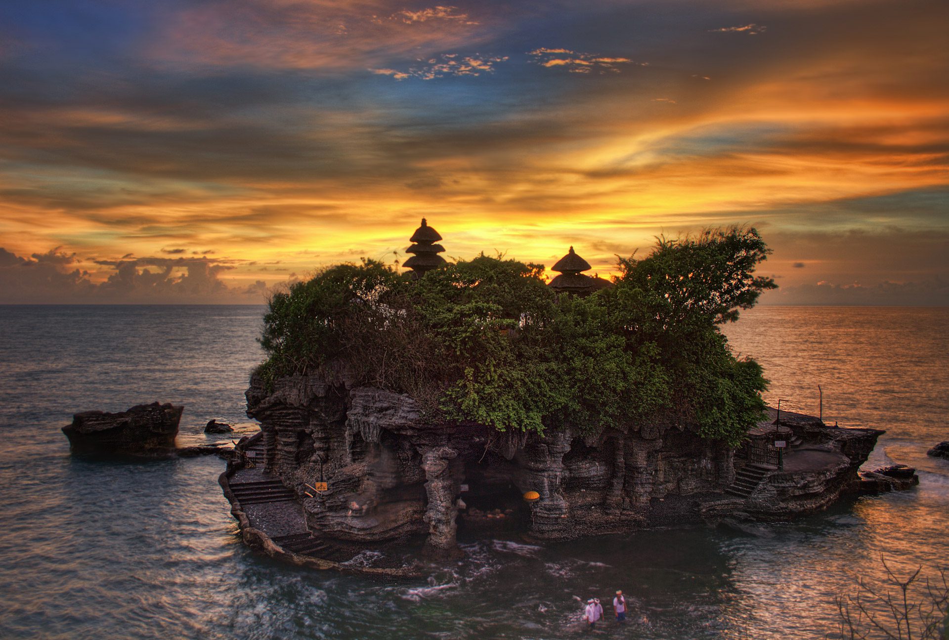 Один из главных символов Бали – Танах Лот, храм, построенный над океаном на скале, что особенно впечатляет. Это часть комплекса, объединяющего семь храмов, построенных на побережье так, что из одного строения видно другое. Тропа к этому действующему храму проходит мимо множества лавок и магазинчиков с сувенирной продукцией, востребованной туристами.