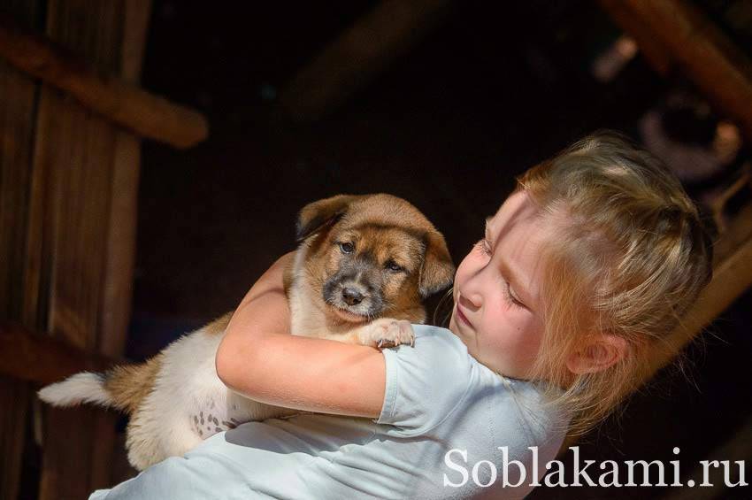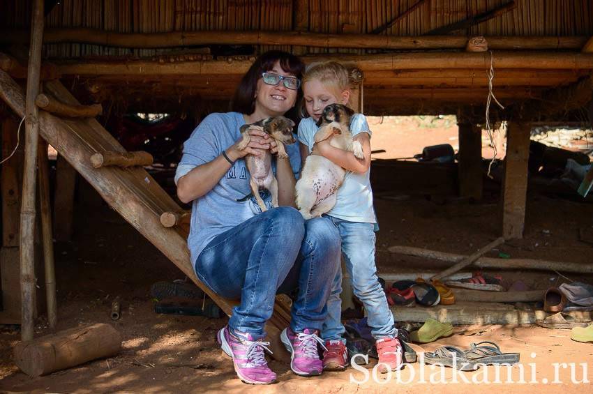 И хоть в деревне лаху нет ничего особенного, нас тут привлекли сразу два ее обитателя. Пара щенулек – пушистый и лысый, малюсенький и чуть побольше. Что нужно ребенку для счастья? Правильно, потискать щенка!