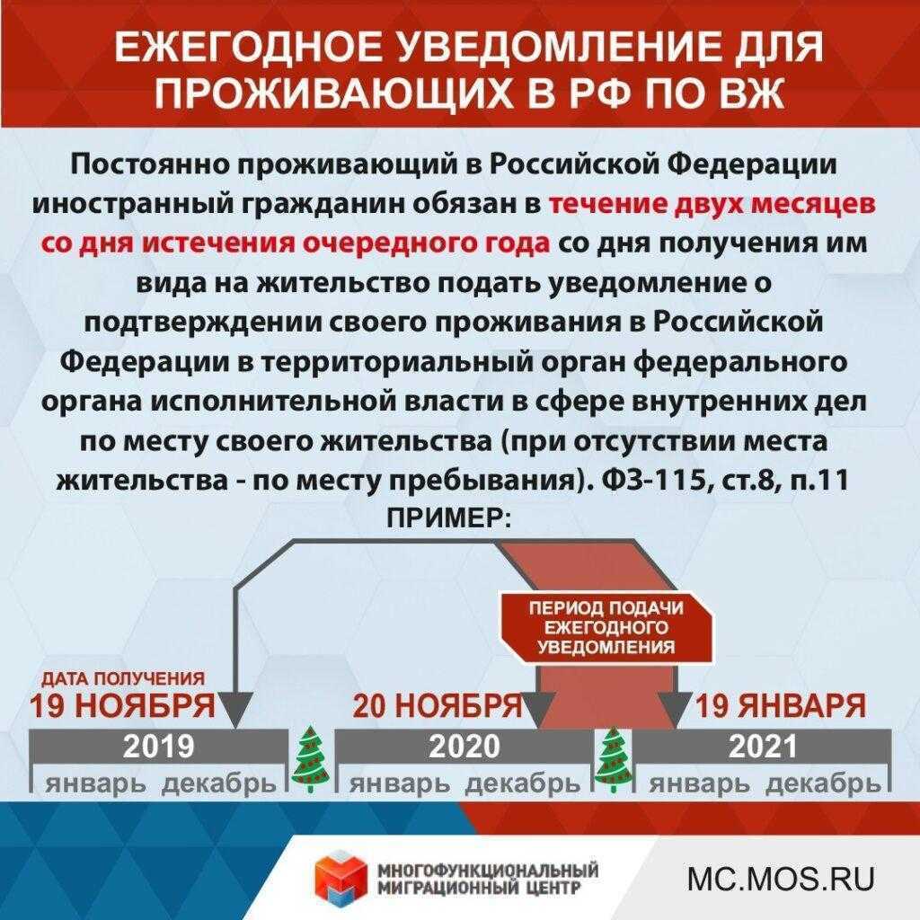 Теперь недостаточно получить вид на жительство, подтверждение проживания пояивалось, чтобы избежать подобного поведения иностранных граждан. Было принято решение о введении ежегодных проверок для иностранцев в статусе резидентов с ВНЖ. Проверка заключается в уведомлении самим резидентом о том, что он действительно проживает в РФ в соответствии со своим статусом. Процедура проводится раз в год.