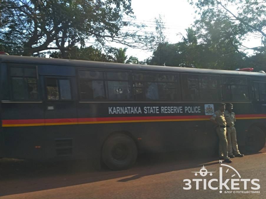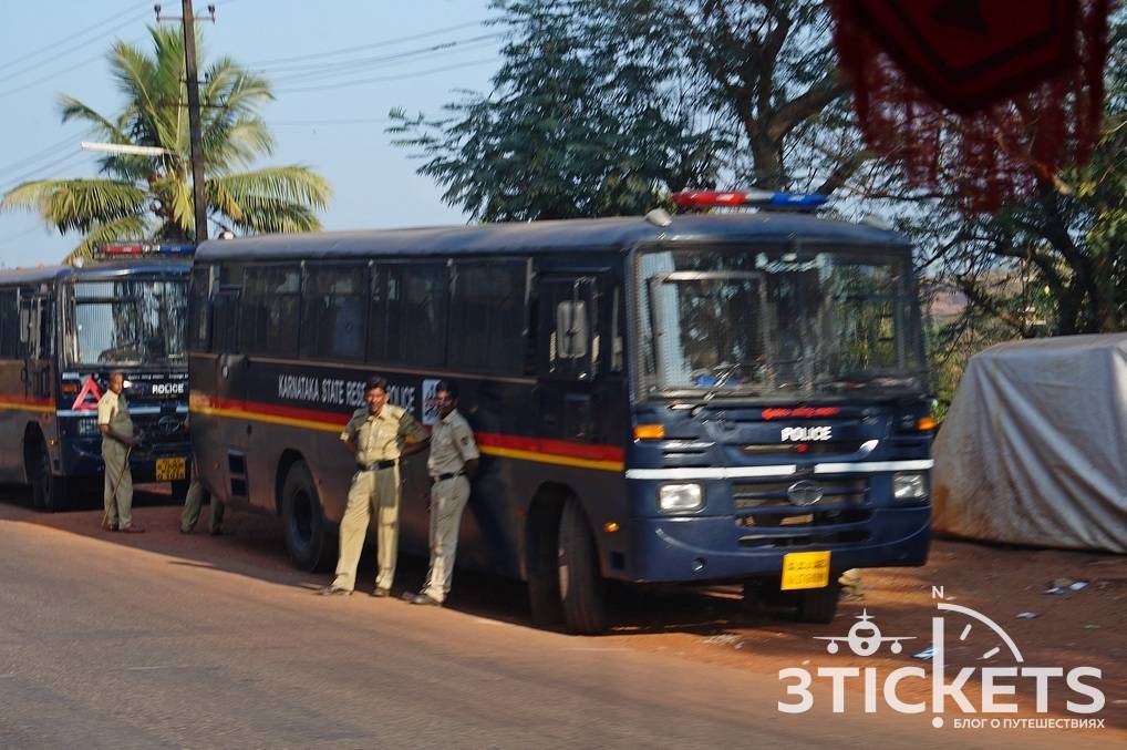 Это просто невероятное «везение», но мы оказались очевидцами беспорядков в штате Карнатака, вызванных убийством мусульманами 19-летнего индусского парня. Насколько нам известно, такие беспорядки — настолько редкие явления в этих мирных окрестностях, что наш экскурсовод за 13 лет жизни в Гоа ни разу такого не видел.