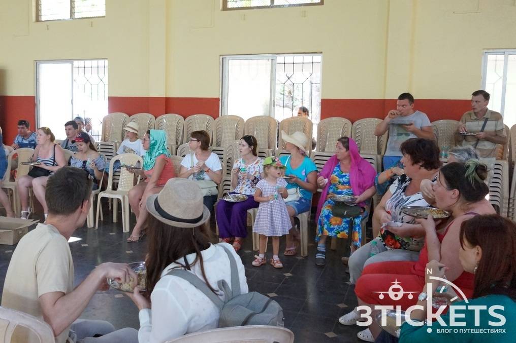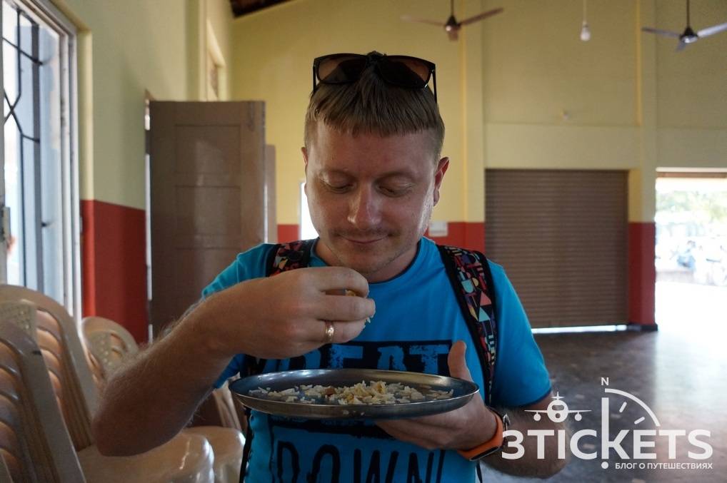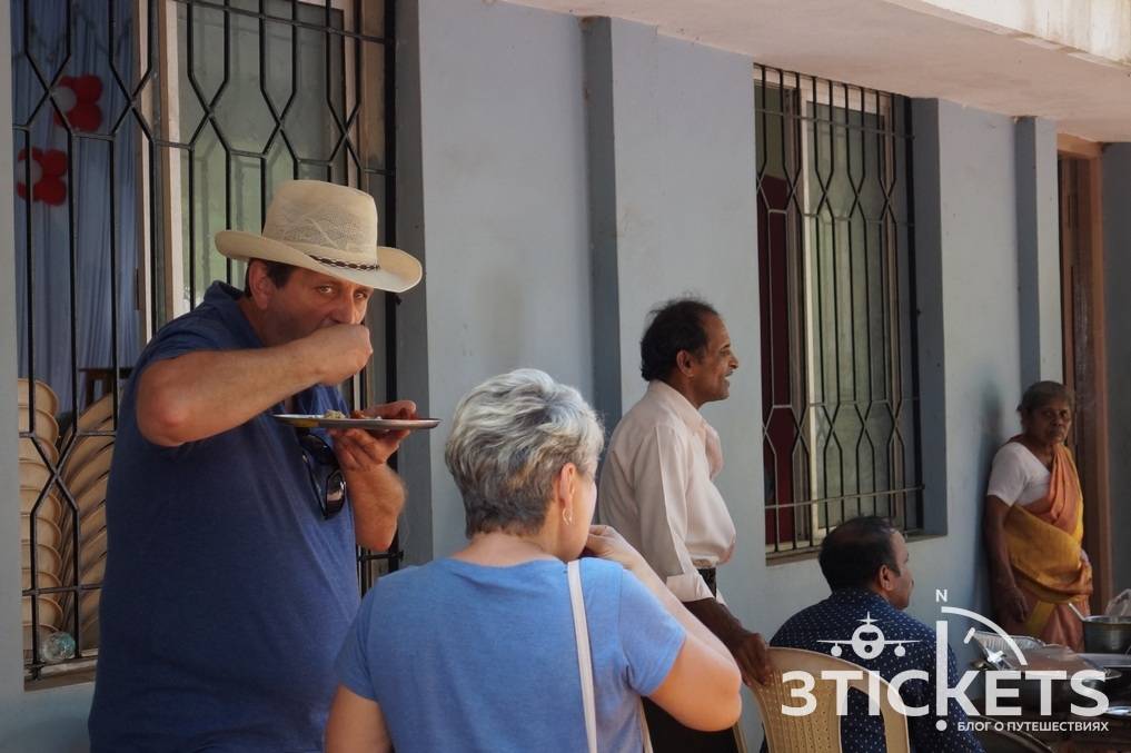 Всем туристам на время трапезы пришлось превратиться в индийцев и есть вегетарианский рис руками