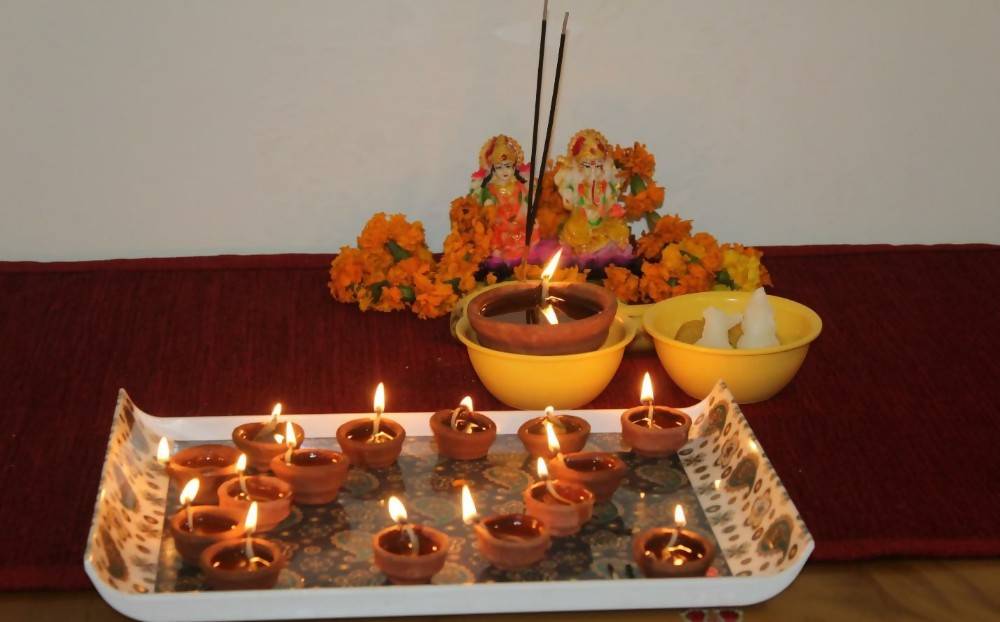 Чтобы почтить божеств, зажигают огни и свечи, что символизирует победу светлых и чистых сил над темными, так как, согласно индийской философии, тьма означает невежество и незнание.