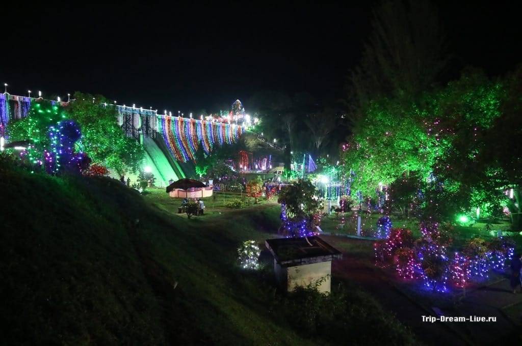 Как раз в это время мы были в керальском городке Неардам, здесь находится довольно большая дамба, которая вся была увешана разноцветными фонариками, которые в течение 10 дней будут гореть каждую ночь.