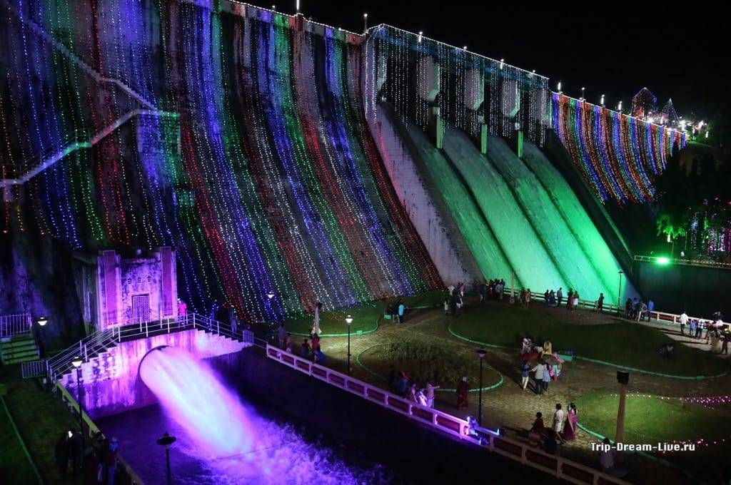 Кроме фонариков, здесь подсветили ещё и потоки воды с дамбы. Зрелище очень впечатляющее и совершенно неожиданное, для местечкового индийского городка.
