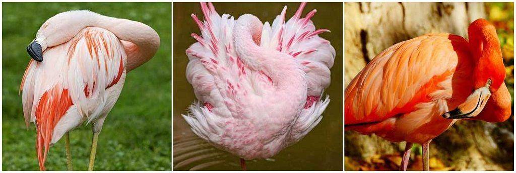 | Фламинго обыкновенный (розовый) | Африка Южная часть Европы Юго-запад азиатской части континента | Самые рослые среди других, достигают 1,3-1,5 м Оперенье классическое нежно-розовое, но на крыльях пурпурно-красного оттенка, встречаются чёрные маховые перья |