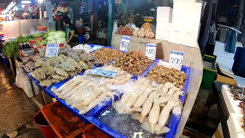 Также здесь есть выбор (хотя и не самый большой) морепродуктов. За ними лучше отправляться с самого утра, чтобы купить свежий товар. Придется рано встать, в сезон рынок начинает работу обычно с 6 ч утра. А закрывается он вечером, около 6 ч, как большинство рынков. Находится рынок Сом Мой в центре, в пешей доступности от многих отелей.