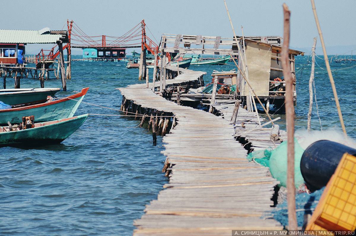 Закат на пляже Раш Вем на Фукуоке. Живописная плавучая деревня на Фукуоке с морскими ресторанами.