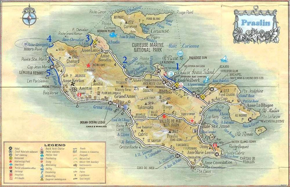 На острове Праслин есть необычные пальмы, из-за которых здесь организовали национальный парк. Кокосы, растущие на тропических деревьях, своей оригинальной формой напоминают сердце. Это одна из причин того, что на Праслине любят отдыхать новобрачные. Пляжи здесь тихие, а подводный мир удивляет своим многообразием. Вечеринки устраиваются в небольших городках, покой людей, отдыхающих на берегу, они не нарушают.