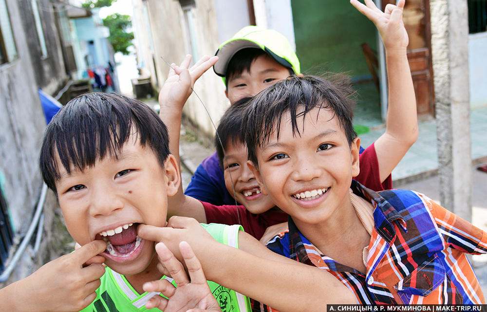 Мальчишки в городе Ан Тхой во Вьетнаме атаковали нас. Веселая компания на пляже Бай Кхем во Вьетнаме приглашала присоединиться к пикнику.