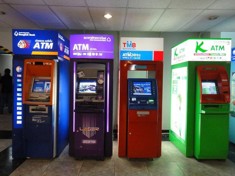 Банкоматы на острове находятся на каждом шагу: в аэропорту, в торговых центрах и магазинах, на улице и в отделениях банков. Снять деньги в банкоматах на территории торговых центров и банков Пхукета можно только в рабочие часы этих центров и банков. Уличные банкоматы работают круглосуточно