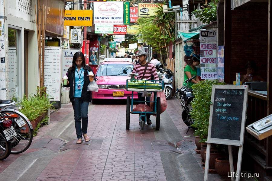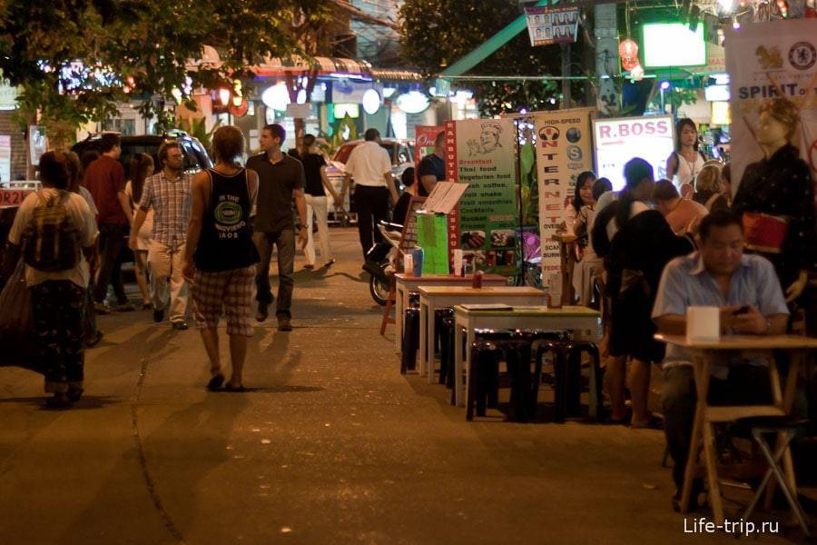 Весь район Каосан состоит из гестов, отелей, ресторанчиков, кафешек, билетных касс, тревел-агенств. На этой улице можно встретить путешественников со всего мира, очень интернациональное место.
