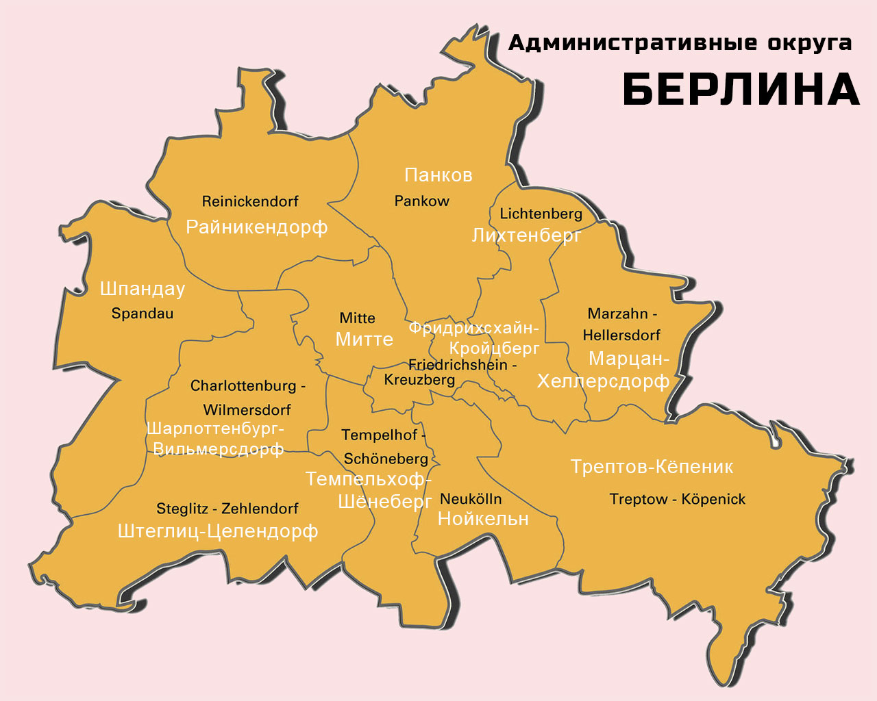 Митте. Район Берлина, в котором сосредоточены многие исторические достопримечательности: Рейхстаг, Красная Ратуша, Браденбургские ворота, телевышка на площади Александоплатц. Именно с этого района зарождался современный Берлин. Здесь огромное количество музеев, памятников архитектуры, а также различных правительственных зданий. Жизнь в районе кипит круглые сутки. Митте – спокойный район, его можно порекомендовать для семей с детьми. Заведений общественного питания здесь достаточно: различные кафе, рестораны с японской, китайской, турецкой кухней. Также встречаются продуктовые магазины эконом-класса. Данный центральный район идеально подходит для жизни туристов.