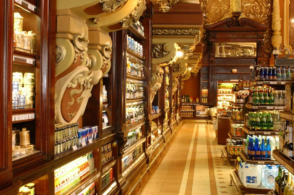 Магазин располагается на первом этаже. Он ничем не напоминает современные супермаркеты. Скорее, это магазин-музей с изысканной атмосферой конца XIX века. Наверно, поэтому здесь любят бывать иностранцы. В «Елисеевском» подают (слово подобрано абсолютно верно) совершенно невероятные пирожные. Говорят, даже французские шеф-повара были от них в восторге. Особенно приятно бывать в «Елисеевском» в непогоду, что в северной столице не редкость. Это такое удовольствие — выпить чашечку обжигающего чая или кофе с многослойным пирожным «Лаванда» из миндального бисквита с какао, чернично-лавандовым кремом и лавандовым муссом из белого шоколада.