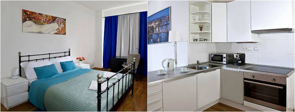 Недорогой апарт-отель между Староместской площадью и Пороховой башней. Есть апартаменты на любой вкус и кошелек, от небольших бюджетных студий до громадных квартир по 100-130 квадратных метров.