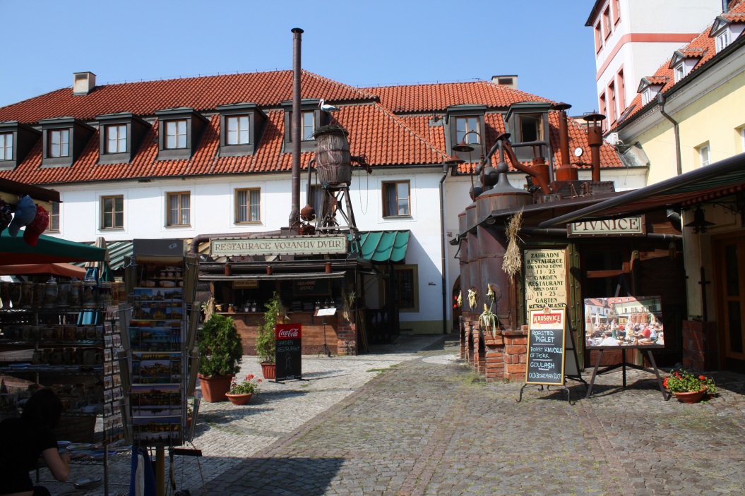 - U Vystrelenyho Oka – раньше, когда в чешских пивных разрешено было курить, в этой пивной можно было вешать топор. Сейчас сигареты все курят на улице, траву тоже, но косяк не всегда успевают донести до улицы и затягиваются прямо там, поэтому запах довольно специфический. С детьми вообще не рекомендуется. Тут шумно людно. Туристов нет, только местные. Из еды только жареная колбаса, сыр Гермелин и маринованная рыбка. И плюс наисвежайшее пиво.
