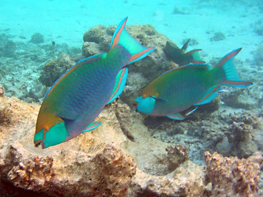 А задумывались ли вы о том, из чего состоит белоснежный мальдивский песок? Оказывается, что его большая часть – это непереваренные остатки кораллов. Их выделяет рыба-попугай. Этот морской житель мальдивских вод питается преимущественно водорослями и мертвыми кораллами. Причем поесть рыба попугай любит и тратит на это до 90% своего времени. Каждая рыба ежегодно пополняет запасы песка островов – одна особь производит до 320 килограмм такого песка суммарно в год.