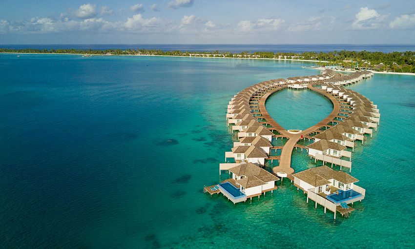 Еще одна пара островов, вошедшая в подборку самых красивых на Мальдивах. Здесь вас удивит подводное решение резорта.