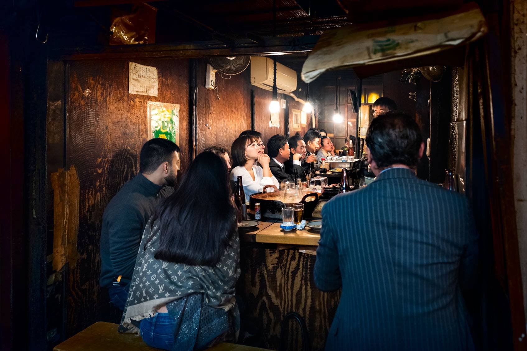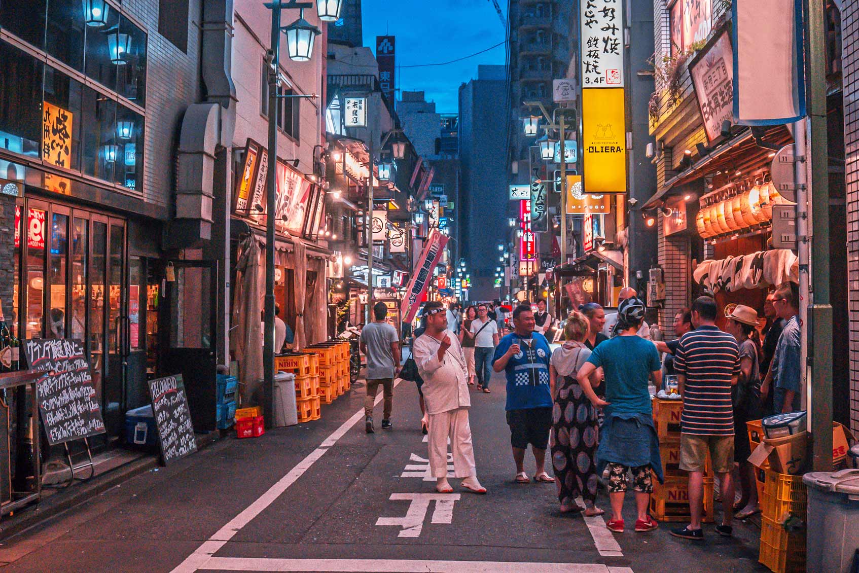 В Токио рядом с памятником Хатико на станции Сибуя сохранилась маленькая улица с двухэтажными домиками 1940-х годов, которые чудом спаслись от послевоенного сноса. Сегодня внутри каждого из них расположены мини-бары, в которые помещаются от трех до шести человек. Часто такие бары держит небольшая семья, они сами готовят и обслуживают гостей. Из-за большого ажиотажа среди туристов оплата в заведениях на этой улице почасовая, а столики в хорошие места всегда забронированы наперед. Но есть и плюсы — можно всегда встретить новых знакомых бок о бок в прямом смысле.