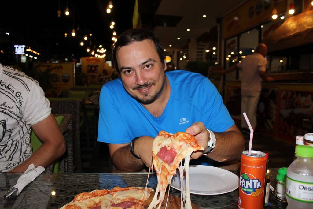 Честно признаюсь тут мы просто стали жертвой рекламы. В первую очередь зазвал нас туда очень обходительный русскоговорящий турок — они вообще знают толк в привлечении клиентов. Кроме того, заманила надпись 9 баксов за большую пиццу, причем за абсолютно любую. Пицца кстати, оказалась очень даже хорошей. Не смотря на то, что в Сиануквиле полно различных пиццерий, походом мы остались вполне довольны. Пицца нас не подвела, как и обслуживание. К тому же, кафе было расположено совсем близко к нашим бунгало.