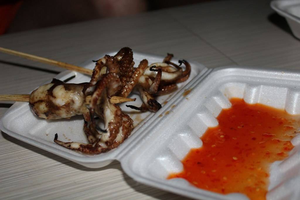 - Жареные морепродукты и другая еда от местных, попробовать можно прямо на берегу или на подходе, на самых оживленных улицах у лоточников. В частности, мы оценили лангустинов (дома так пожарить не смогли) и осьминогов по доллару за пару штук прямо с огня