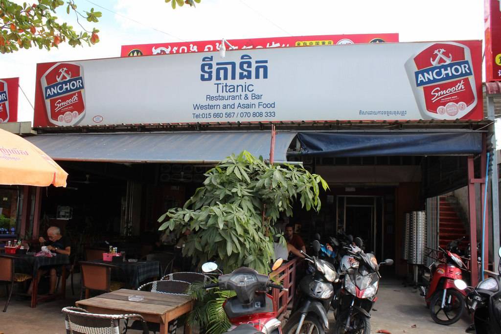 Найти кафе Титаник в Сиануквиле в Камбодже совсем не сложно, он прекрасно отображается на картах гугл, правда с гордым именем ресторан.