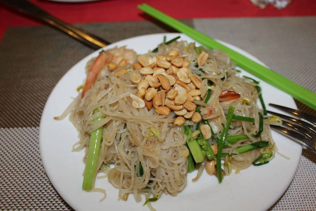 - Вторые блюда: Лок-Лак, Бай сач, Пад Тай — последнее блюдо опять же дань тайской кухне. В своё время Насте очень понравился кхмерский блин, нечто среднее между блином и омлетом с кучей начинки, дополнительной зеленью и соусом