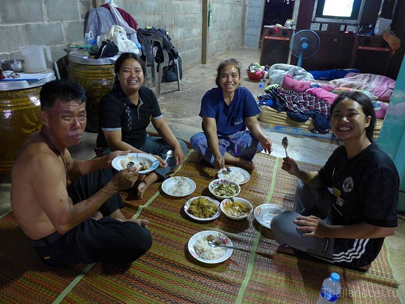 Ужинаем вместе. Я в кругу семьи, как свой: вот между отцом и Laong место для меня.