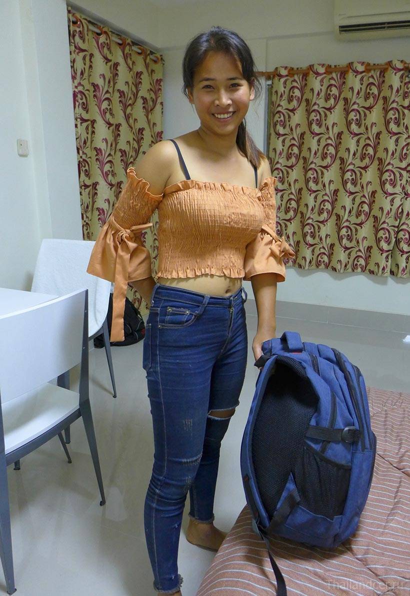 Тайка по имени On (если я правильно понял имя). Ей 20, инфа в фейсбуке это подтверждает, но выглядит немного старше. Английский очень слабый. Взял на лонг в из гоу-гоу бара.