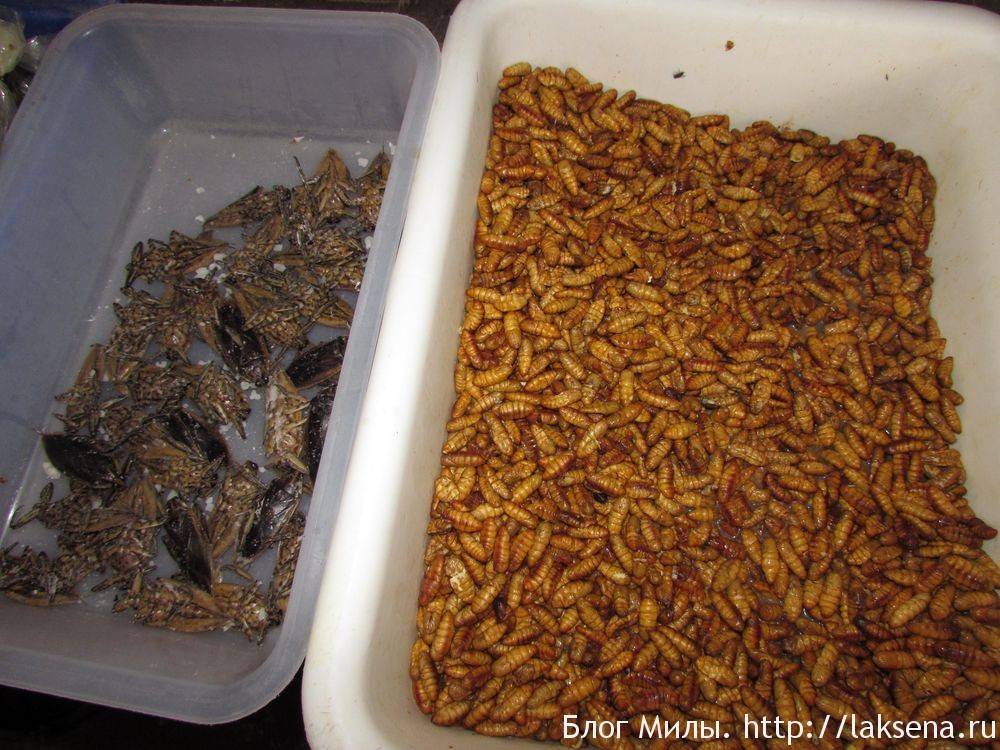 Продаются на рынке даже насекомые для приготовления во фритюре.