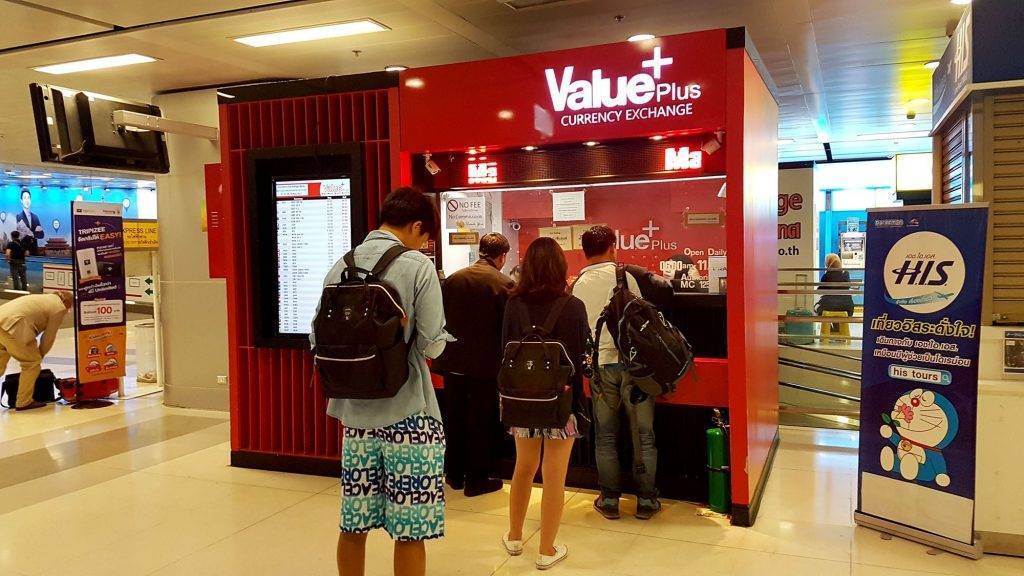 Если вы прилетаете в международный аэропорт Бангкока Суварнабхуми, то там есть обменник с очень выгодным курсом, даже выше, чем в некоторых местах в городе. Можете смело менять в нем деньги на первое время. Этот обменный пункт находится на самом нижнем уровне аэропорта возле турникетов на вход в аэропортовое метро Airport Rail Link (ARL).